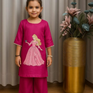 Princess Aura – Hand-Painted Rani Pink Kids Co-Ord Set