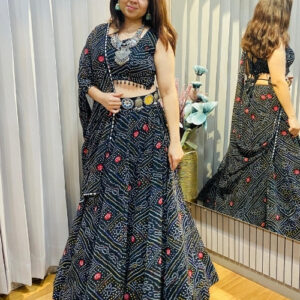 Kaala Rang – Bandhani Print Chiffon Lehenga Choli Set (10 Metre Gher)