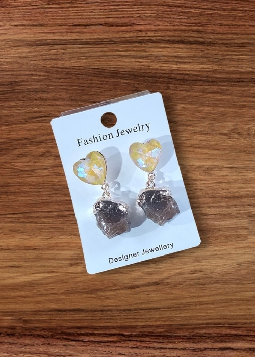 Make a subtle statement with these Crystal Heart Drop Earrings, designed to add sparkle and texture to your look. Featuring a faceted heart-shaped crystal top paired with a raw-style crystal drop, these earrings blend modern elegance with artistic charm.
