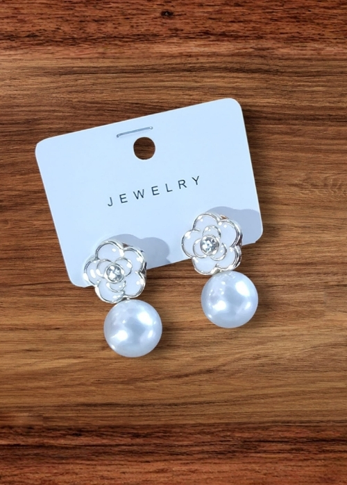 Add a touch of timeless elegance to your look with these Floral Pearl Drop Earrings. Designed with a delicate silver-toned flower motif and finished with a classic pearl drop, these earrings strike the perfect balance between grace and modern charm.