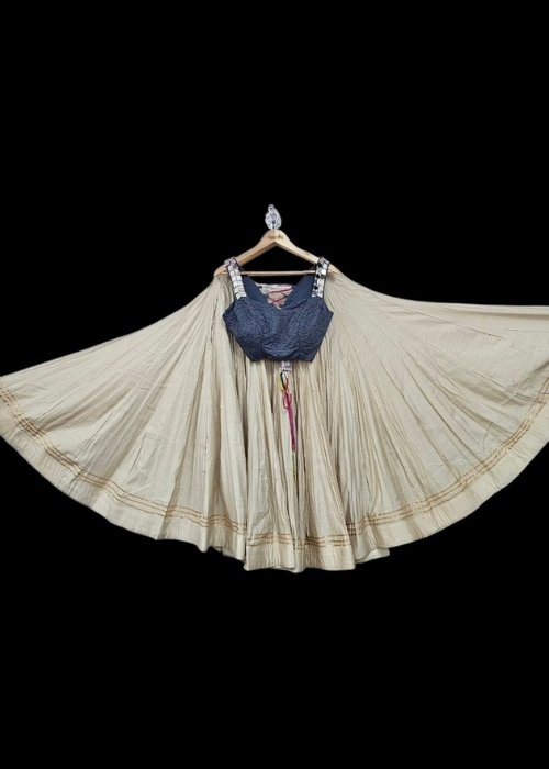 Designed for effortless elegance, the voluminous gher enhances twirls beautifully, making it an ideal choice for Navratri, weddings, festive occasions, and cultural celebrations. The subtle detailing along the hem adds refinement while keeping the look versatile and easy to style with embroidered, mirror-work, or contrast blouses.