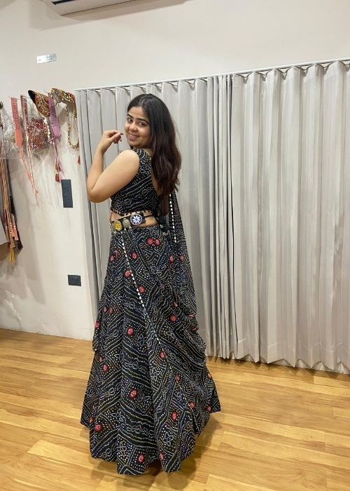 Kaala Rang – Bandhani Print Chiffon Lehenga Choli Set (10 Metre Gher)