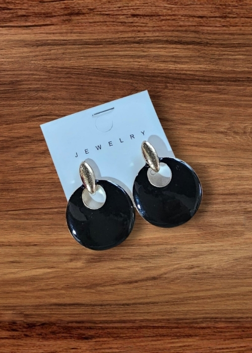 Bold, sleek, and effortlessly stylish — the Midnight Noir Disc Statement Earrings are designed for women who love modern minimalism with a dramatic edge. Featuring glossy black circular discs paired with textured gold-toned studs, these earrings strike the perfect balance between elegance and contemporary fashion.