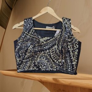 Navy Blue Georgette Blouse with Sequin Tikki Detailing – Round Neck, Size M
