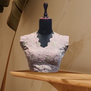 Peach Cotton Blouse with Machine Embroidery and V-Scallop Neck – Free Size