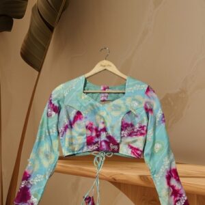 Pista Green & Pink Silk Tiedye Blouse – Diamond Neck, Free Size