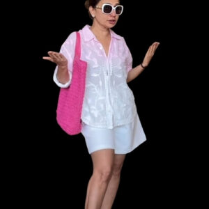 Blush Bloom – Western Shirt with 3D Leaf Detailing