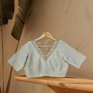 Ivory Gold Tissue Ancha Blouse with Scallop Lace – V-Neck, Size XL